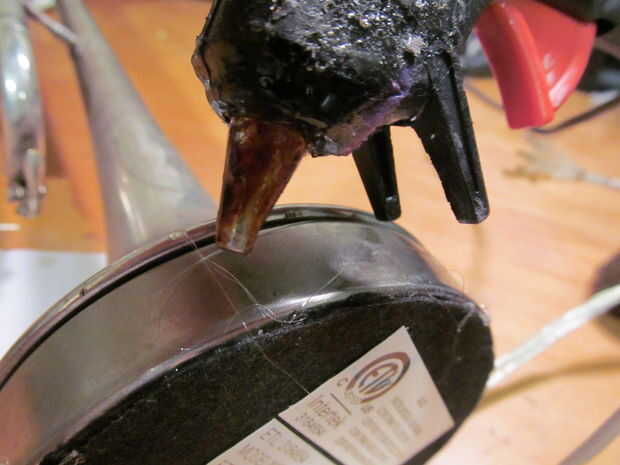 Utilice pegamento caliente para volver a poner el fieltro en la parte inferior de la base.