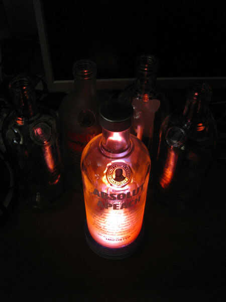 Uso de posavasos y un botón led lite, podría hacer fácilmente una botella de Vodka o cualquier otro objeto que es transparente como un cristal en una lámpara!