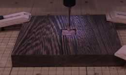 Para la base de la lámpara, utilicé un 3/4" pieza de Wenge corta un 6 × 6 cuadrado. "Base de la lámpara" en la base de carga. Esto corta el agujero de la lámpara y una ranura para el cable. Puede que necesite ajustar la cut outs si usas una lámpara diferente.