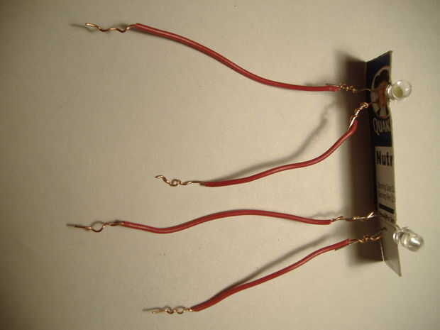 2) retorcer todos cuatro a las cuatro patas de los LEDs (intentar girar firmemente pero con cuidado porque usted no quiere las patas LED para romper).