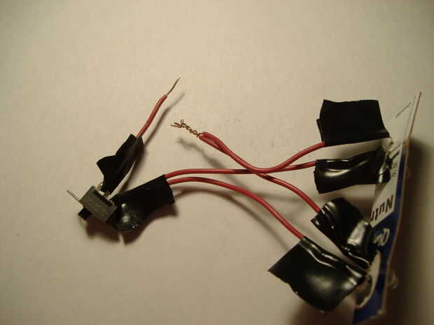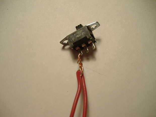 5) tuerza un extremo del cable más corto en una pierna en el interruptor que está al lado del último alambre.