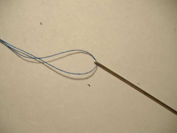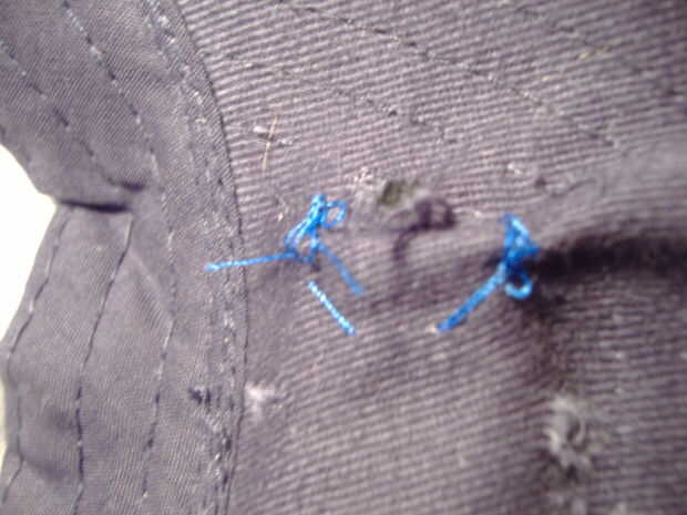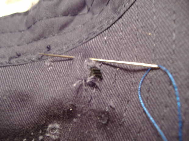 2) enrosque el otro trozo de cadena en la aguja y coser la parte delantera del sombrero y haga un nudo al final.