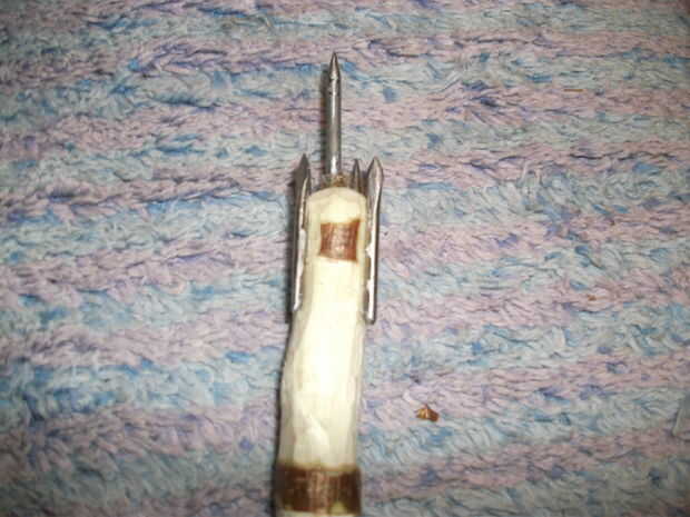 Haz tu clavija de la tienda y empezar a afilar en una lima de metal o una piedra mojada. Quieres un poco más agudo que una aguja. Cuando lo ha hecho entonces debe usar un hack vio a cortar unos 7 cm de la point.then podría hacer 4 más para ir a los lados o sólo podría tener el.