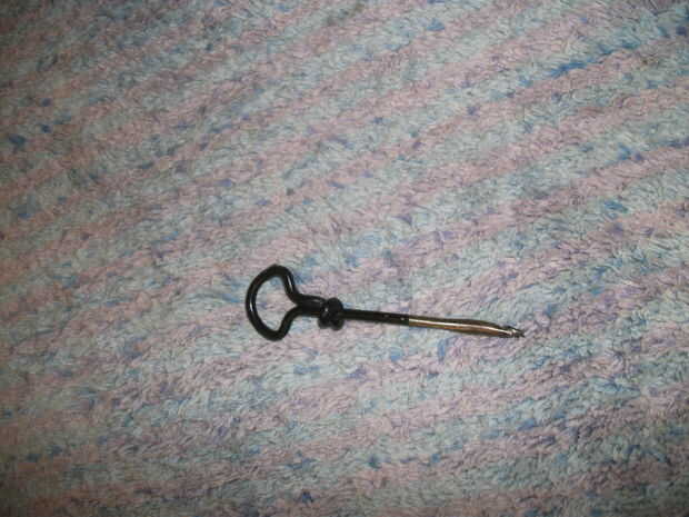 Ahora tienes la cabeza de lanza que necesita para atar al palo. Primero necesita hacer un agujero de unos 2 cm en y apenas lo suficientemente amplio como para la cabeza de la lanza en el espacio dentro y fuera.