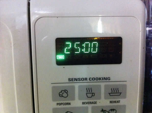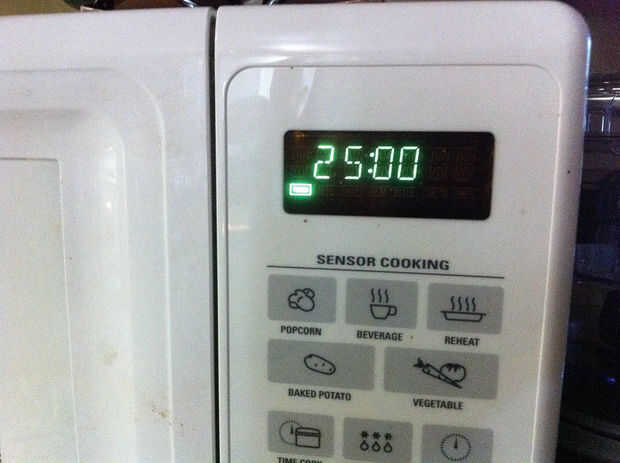 Pero hoy no. Estamos usando el microondas sólo para el temporizador.