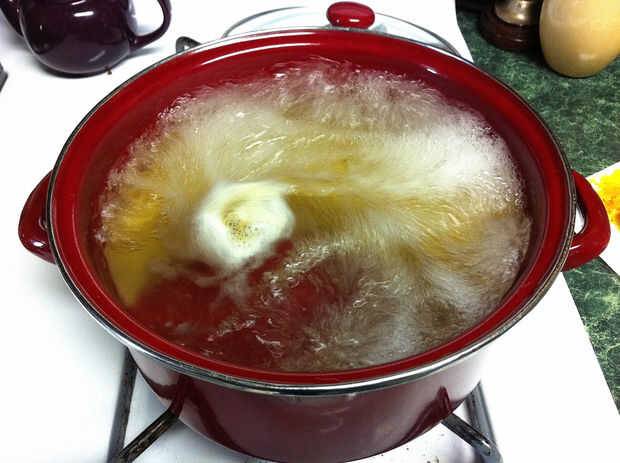 mantener hirviendo. Si debe, colocar los fideos en la olla, cubrir y verlo. Una cubierta