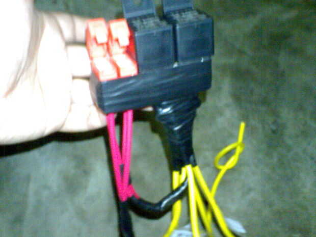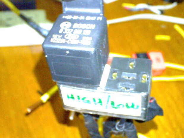 11 obtener los cables etiquetados con 2pcs baja pulsación y gire a la 87(line-OUT) donde su relé de baja debe ser luego de la soldadura y E.tape o utilizan un tubo del encogimiento. entonces el otro extremo del cable necesita el hombre la espada rebanada terminal el cable de 1/2 pulgada y luego prensar el terminal con la herramienta que prensa... Yo sólo uso mi pico largo para hacerlo... luego poner algunos E.tape o tubo del encogimiento.