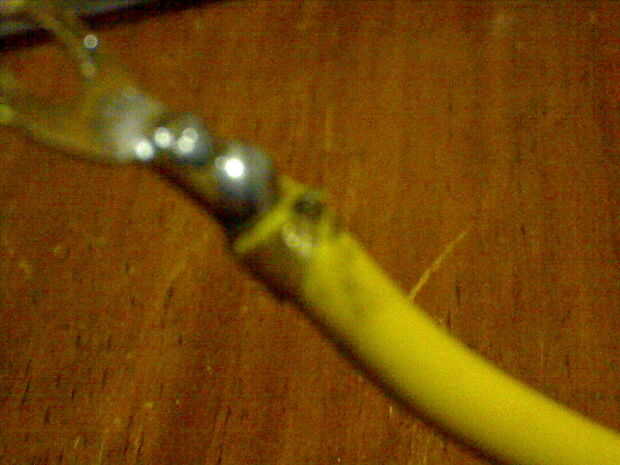 13 ahora los cables para NEGATIVE(ground) Obtén los dos extremos de la toma de y torcer luego y luego añadir otro cable entonces tuerza el cable y luego de la soldadura y E.tape entonces obtener su rebanada terminal de anillo el extremo del alambre alrededor de 1/2 pulgada y luego prensar luego pone algunos E.tape o tubo del encogimiento.