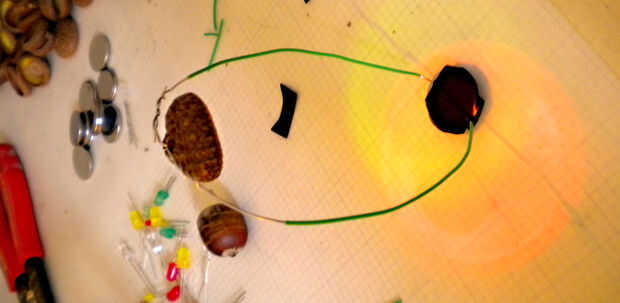 Envuelva los pies del alambre en la parte superior e inferior de la batería y la cubierta de cinta aislante cuando se posa el LED - tendrá que invertir los pies para asegurarse de que la batería se empareja los lados positivos y negativos correcta del LED.