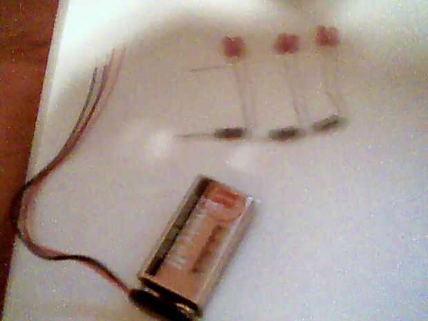 Después, conecté el cable positive(red) del adaptador de la batería a una de las resistencias a través de un interruptor de tirón, pero puede utilizar cualquier cosa para conectarlos, incluso podría conectar directamente, pero el LED se quema muy rápidamente...