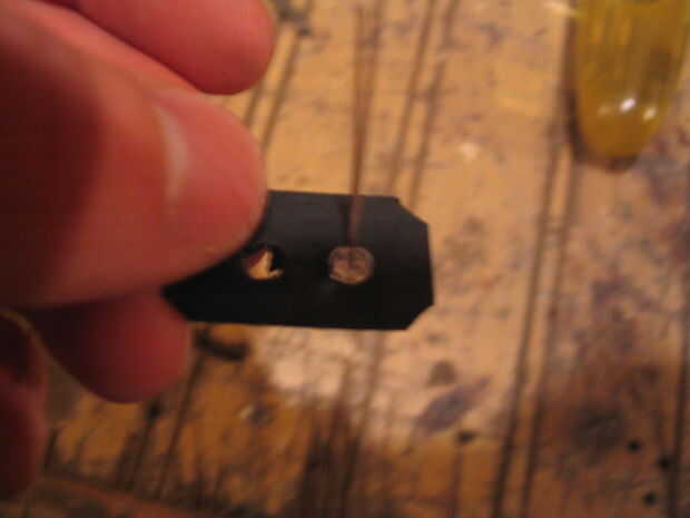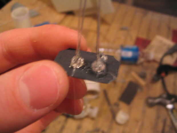 meter dos agujeros en la cosa de fondo con un clavo palo de los leds en los agujeros una caliente pegar allí Cruz y soldar entre sí los dos cables led positivo y soldar un cable a lo Cruz y soldar los dos hilos led negativos entre sí y soldar un cable a lo