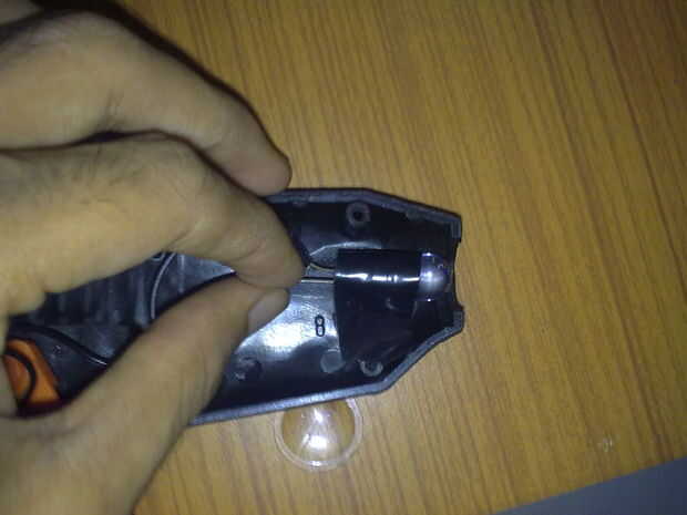 Ahora con cinta adhesiva el LED en la posición en la parte delantera de la pistola de pegamento tal que la punta del LED es un poco dentro de la punta de la pistola.