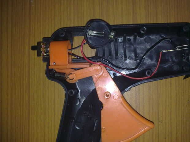 Pasar el soporte soldado a través del espacio en el lado de la pistola como se muestra.