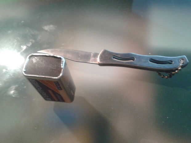 Después de eso, quite las partes internas de la batería, manteniendo solamente la tira poco conectada al polo negativo y el caso.