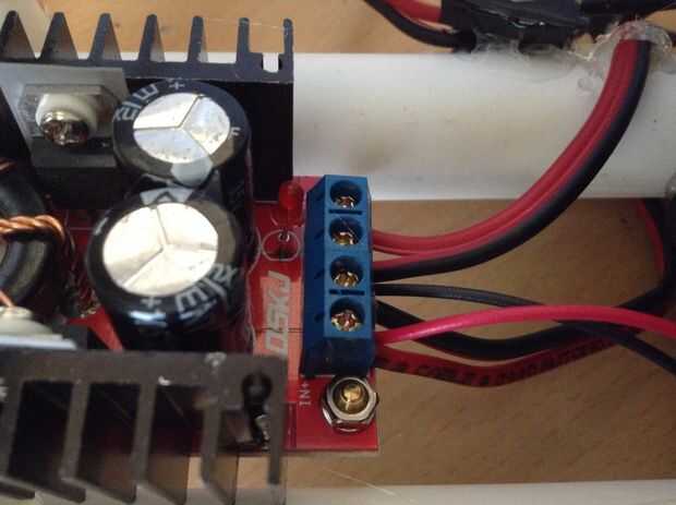 2. Atornille el cable con el puerto de entrada del convertidor boost.