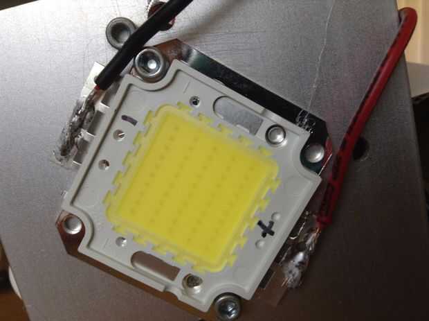 5. Soldar cables de salida de convertidor boost directamente al chip LED