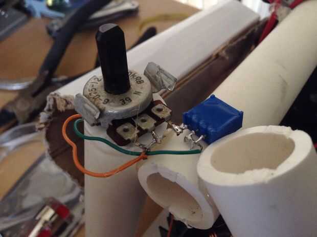 Para agregar su potenciómetro, primero necesitará desconectar el bote original del convertidor boost. Puede hacer esto por lo desoldering. A continuación, agregue el nuevo pot y la olla vieja en la serie a sus puntos de conexión en la placa del convertidor boost. Asegúrese de que 2 de los 3 pernos de soldadura juntos en cada maceta.