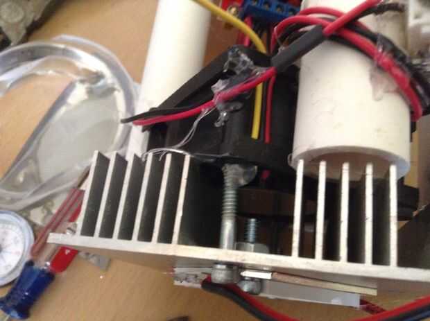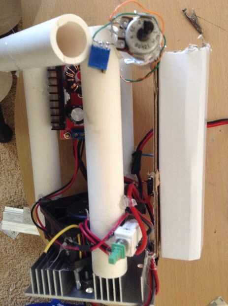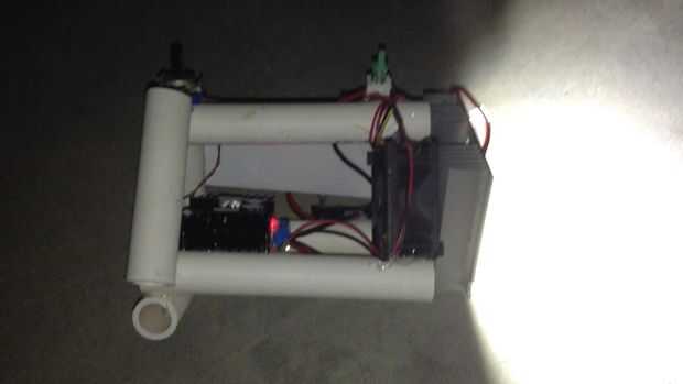 Este caso puede ser realmente lo que quieras y lo que piensas es lo mejor. He utilizado tubo de PVC pegado al ventilador de la computadora en un prisma triangular como mi caso. Esto permite que uno de los tubos de PVC para servir como un mango por lo que es más fácil de usar. El ventilador y disipador de calor necesitan estar en un lugar que permite el mejor flujo de aire. Todo el resto de los componentes y los cables debe ser conectados sin embargo trabaja mejor para usted.