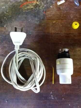 La primera lámpara que saqué aparte tenía una toma de luz realmente grande que no cabe en la lámpara de parafina. Tuve suerte de tener otra edad sentados usé la luz desde el este y el cable de alimentación de la otra.