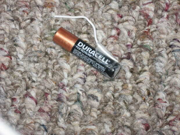 Primero tome el cable puso un extremo en el lado negativo. Cinta adhesiva.