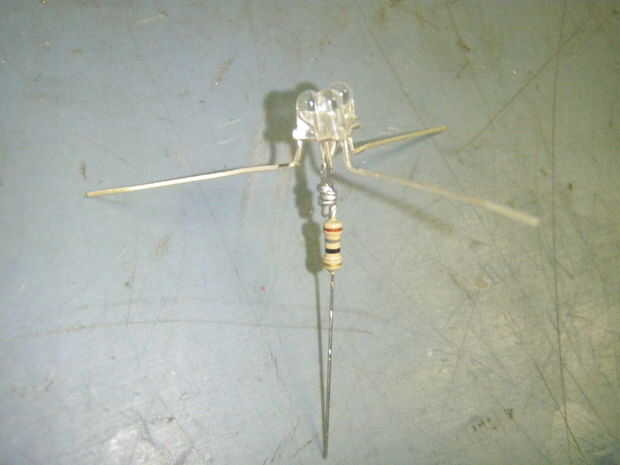 Aquí puedes ver los que yo he soldado las polaridades como juntos, y envuelto y soldar la resistencia de 18 Ohm (este es el final negativo). Los otros tres conductores se sueldan al enchufe de la bombilla.