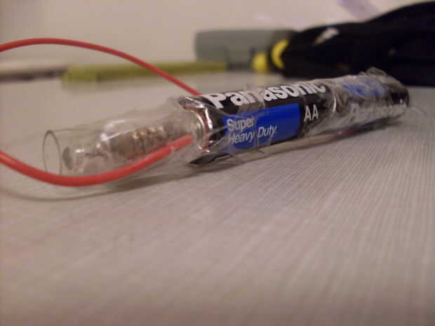 Finalmente, toma la bombilla y cinta en el extremo positivo de la batería!