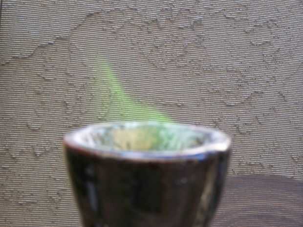 Luz de un fósforo (tuve un partido de palo que queda de algunos cohetes cerilla) y colóquelo cuidadosamente en la solución. Si tienes mucho puedes simplemente tocar la quema fósforo a la solución y recuperarlo. Esto asegurará que usted no consigue ninguna amarillos o naranjas... Creo que los hacen un poco interesante pero eso es sólo una cuestión de gusto personal.