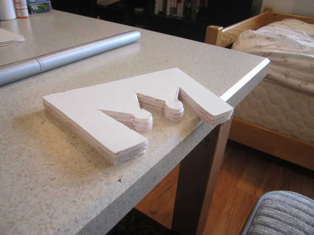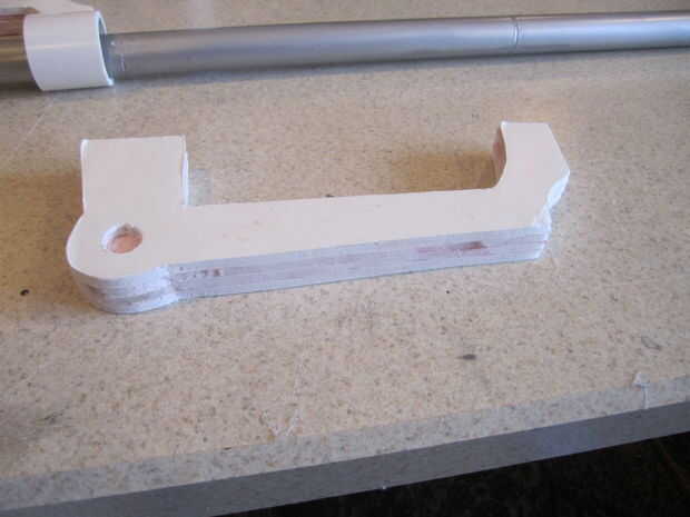 Después córtelo hacia fuera capas de pegamento 4 juntos para cada parte con spay adhesivo. Después de que el pegamento se seca, la arena suave con lija de grano fino. Ya pinté el PVC en esta foto. Sangrado las manijas por perforar un agujero de 1/2 pulgada amplia que pasó con la primera capa.