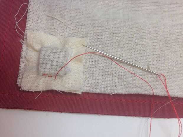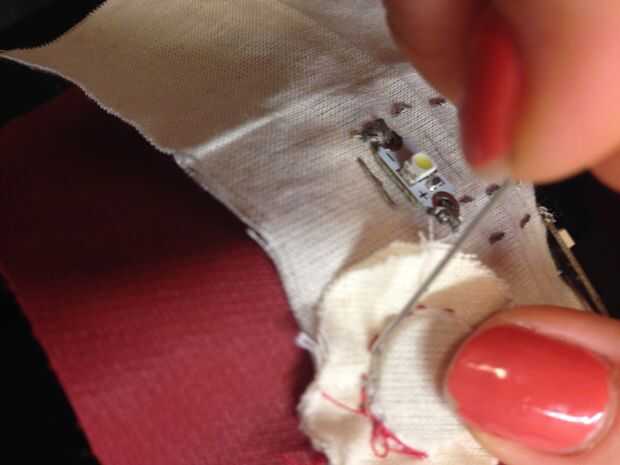 Utilizar otra pieza de calicó y coser directamente alrededor del imán sí mismo. Estos imanes (dentro de la tela) luego se pueden coser en la capa calico de tela - que tiene el circuito integrado en ella.