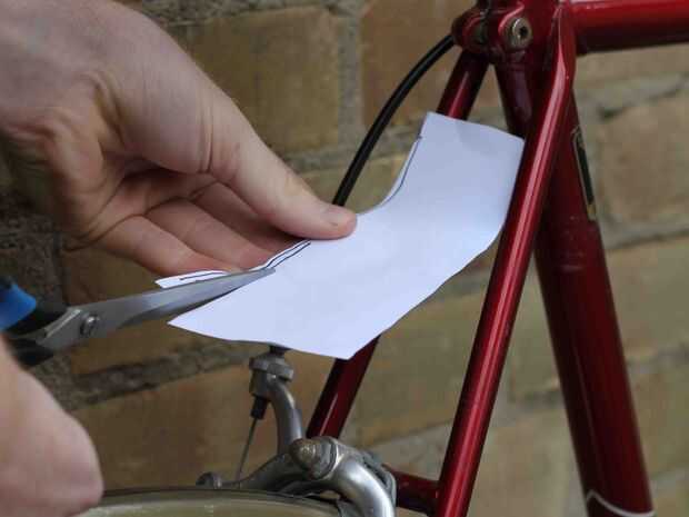 5: cuando se ajusta la cartulina a tu moto se verá donde se pueden hacer ajustes para conseguir el ajuste perfecto. Utilice cinta adhesiva para añadir bits adicionales de la tarjeta.