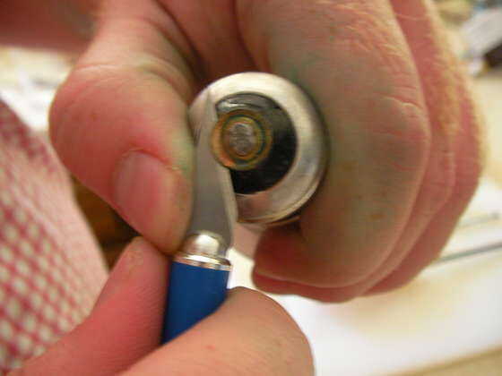 -Con su exacto cuchillo o tornillo de destornillador, palanca arriba el disco metálico en la parte inferior del bulbo.