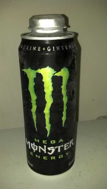 Usted tendrá que consumir un 24oz Mega Monster bebida, que podría ayudar a completar este instructable. lol. No tanto, este es un paso "prisa y esperar". Una vez que haya una lata vacía de Mega Monster Energy Drink; enjuague, llenarlo con agua y colóquelo en el congelador sin la tapa. No queremos el poder para explotar. lol.