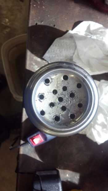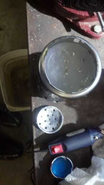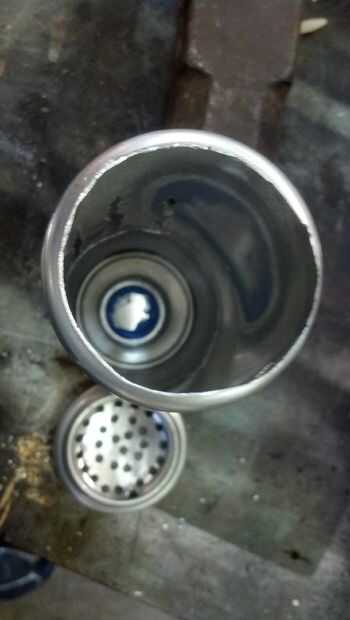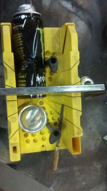 Utilice la lijadora de banda para lijar de la parte inferior de la lata. Esto es sólo para separar la cúpula de la parte inferior de la lata de los lados uniformemente. Que grinded que mina apagado y añaden más trabajo corregir. He utilizado el fondo de una lata de segunda como parte de esta corrección. Debe incluso y no deja marcas de corte ásperas. Una vez que se ha derretido el hielo, puede entregar arena, desde el interior, cualquier asperezas de perforación y corte. ¿Con las dimensiones de los muros todavía un poco mojadas, es lijar mojado justo?