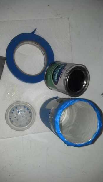 Preparar la lata de pintura. Tenga cuidado con los bordes agudos que agregó en el paso anterior. lol. Póngase guantes de goma. Esto mantendrá los aceites de los dedos fuera del área de pintura y mantenga la pintura de las manos. Limpie el área de pintura con alcohol isopropílico. Limpie cualquier exceso con una toalla de papel y deje que el alcohol restante se disipe. Utilizando cinta de pintor, envuelve un anillo de la cinta alrededor de la "M" que corta fuera de la can, orificio del interruptor y los otros orificios abiertos. Asegúrese de que la cinta se une a todas las partes de la "M", para evitar que la pintura en el exterior de la can. También cubre todos los agujeros que agregó con cinta de pintor.