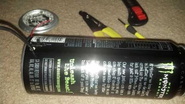 Del cuadro, se puede decir que el color de la "M" no es del mismo color amarillo verdoso utilizado en el resto de la lata. Vista trasera, yo habría utilizado LEDs de UV con el resplandor en el oscuro poder.