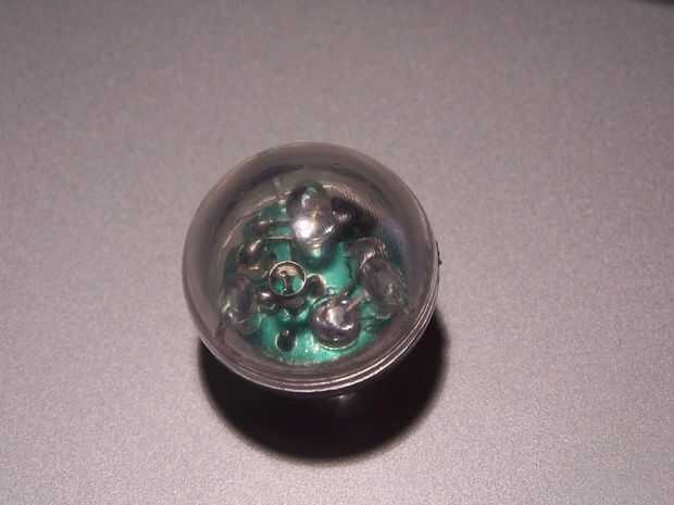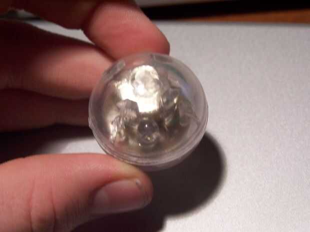 En primer lugar, usted quiere conseguir la bolita de plástico de todas esa goma que lo rodea. Usted puede hacer esto con un cuchillo del Exacto de tipo o algo como eso. A continuación se muestra una foto de él.