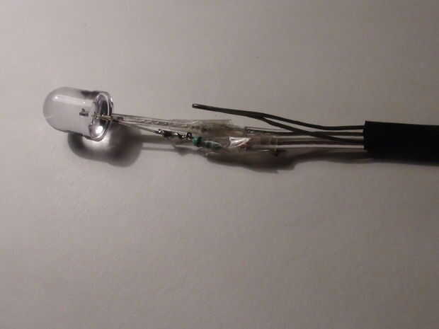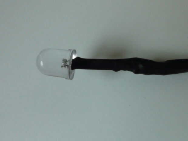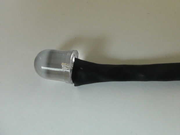 Ahora, tome un pedazo del tubo de encogimiento de calor de 5mm que mide un poco menos que el cable y coloque el alambre y el cable. Entonces, solo calentar hasta que ajuste perfectamente alrededor de todo.