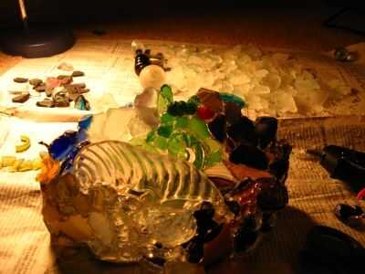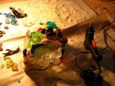 También, si se trabaja con piezas de desecho, soplado de vidrio o cualquier cosa con chips o bordes filosos, pasar esas fichas con pegamento-it no afecta el color, es apenas perceptible en vidrio coloreado y hace menos filos.