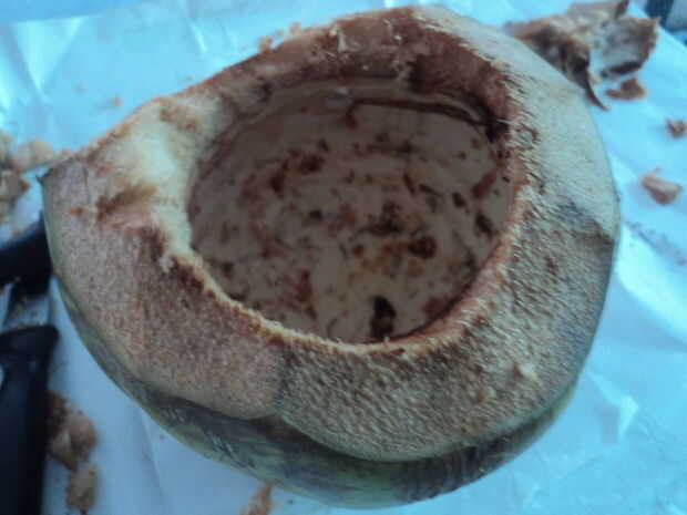 Cómo hacer una maceta de coco joven ecológico (1 / 6 paso)