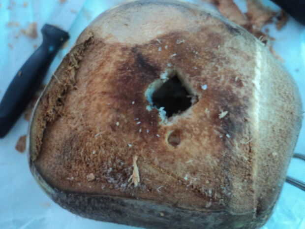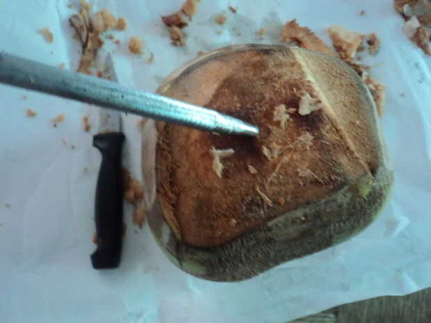 Cómo hacer una maceta de coco joven ecológico (2 / 6 paso)