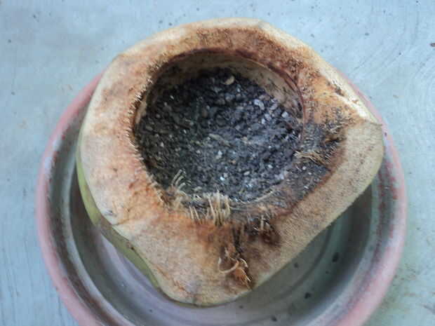 Cómo hacer una maceta de coco joven ecológico (4 / 6 paso)