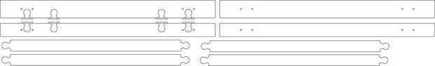 Las cuatro caras de los corredores vertical había que estar en el mismo plano que la parte posterior de las ranuras para poder apoyar la parte posterior de la pizarra, para fijar las piezas verticales a los horizontales implicados una veta a la veta común que no me gustó. Yo pude han utilizado tornillos, espigas o galletas para fijar los listones verticales pero teniendo en cuenta que estaba usando el bot de tienda ya decidí intentar una articulación de rompecabezas de media vuelta que fue idóneo para la fabricación CNC. El dibujo adjunto muestra todas las piezas necesarias para cortar. Los cuatro orificios en cada corredor horizontal son para que el hardware montar la pizarra en el bastidor de tubo.