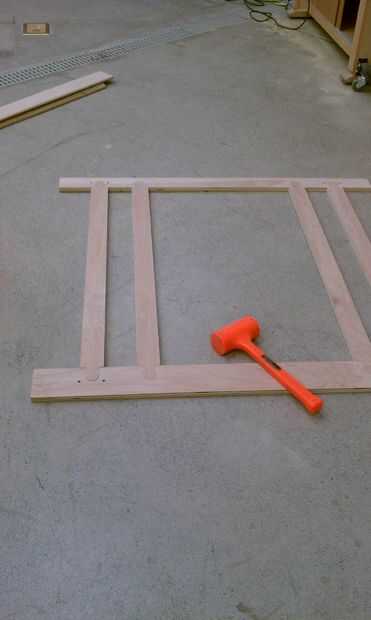 Las piezas cortadas fueron fijadas a la placa principal por las pestañas había inserta el archivo de corte, así que explotó las piezas y enarenada apagado ficha remanente y asperezas. Entonces pruebe la colocación de la cosa entera. Un mazo anaranjado era necesario pero finalmente todos fueron juntos.