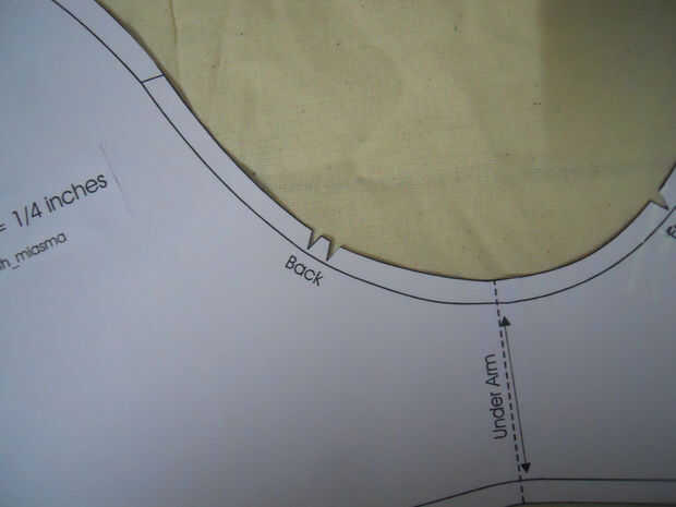 1. Recorte el patrón después de dar más margen de alrededor de 1/4 pulgadas. También hacer 'v' formar cortes en el patrón donde se colocan las muescas para fácil localización.