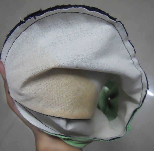 Coser toda la curva. Puesto que mi tela era muy gruesa, había utilizado una longitud de puntada de 3.5.