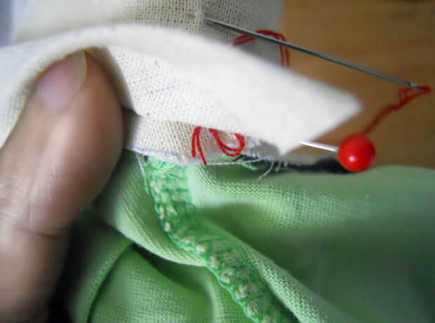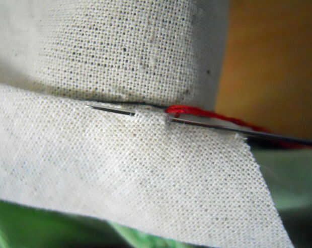Inicio hemming. Para mostrar el proceso que he usado un hilo de contraste. Asegúrese de que coincida con su hilo.