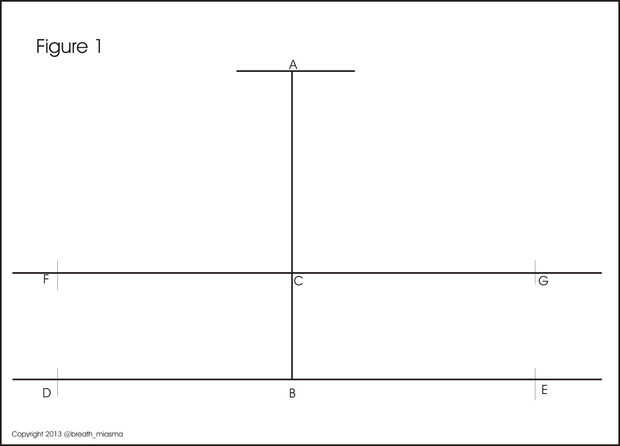 4. en la línea horizontal en el punto (B), Mark D y E y en Point (C), Mark F y G. Donde DB = BE = FC = CG = (circunferencia de bíceps + facilidad) dividido por 2.