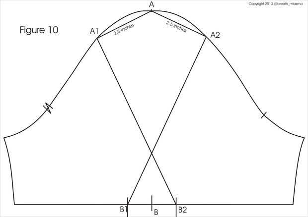 3. marca B1 y B2 en ambos lados 1 pulgada del punto (B) en la línea horizontal.