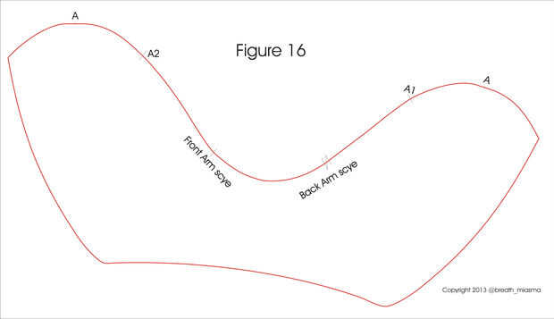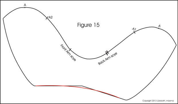 8. volver a trazar el patrón en otro papel con muescas y liso en la parte inferior con una línea ligeramente curva. (Consulte la figura 15 y 16)