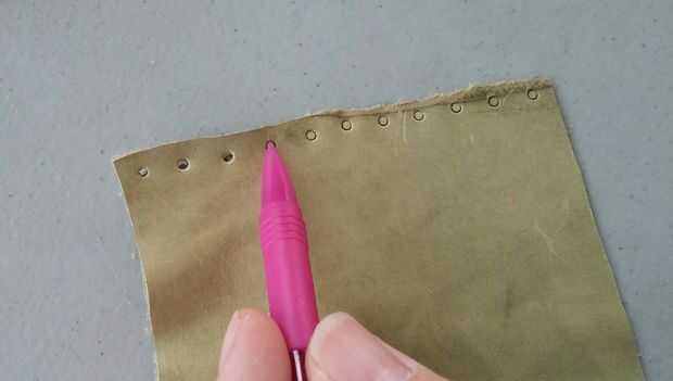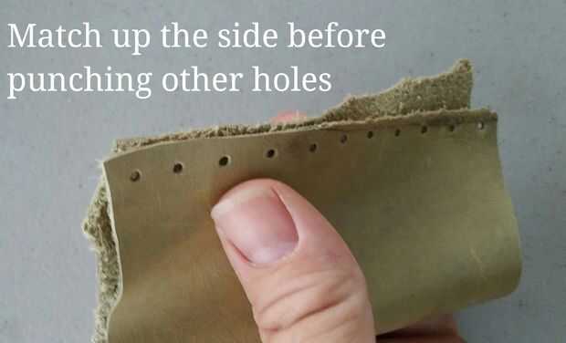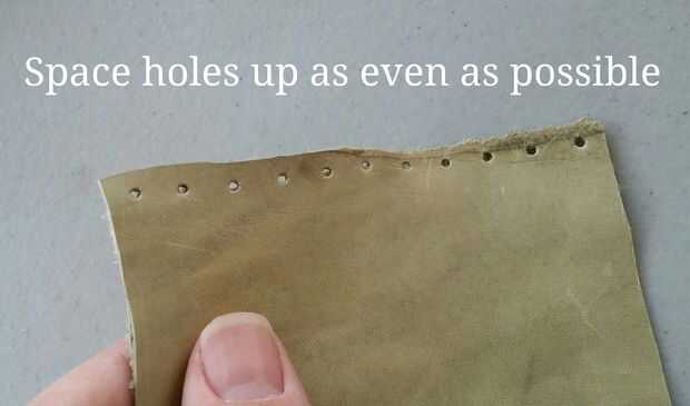 Utilizando una perforadora de cuero o similar, hacer agujeros a lo largo de un lado primero. Hacer agujeros como como posible.